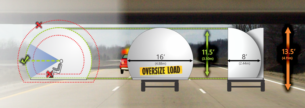 A modular orb can be transported as two 8' wide halves on a single trailer, joined on site, and re-located more easily than a wide-load device.